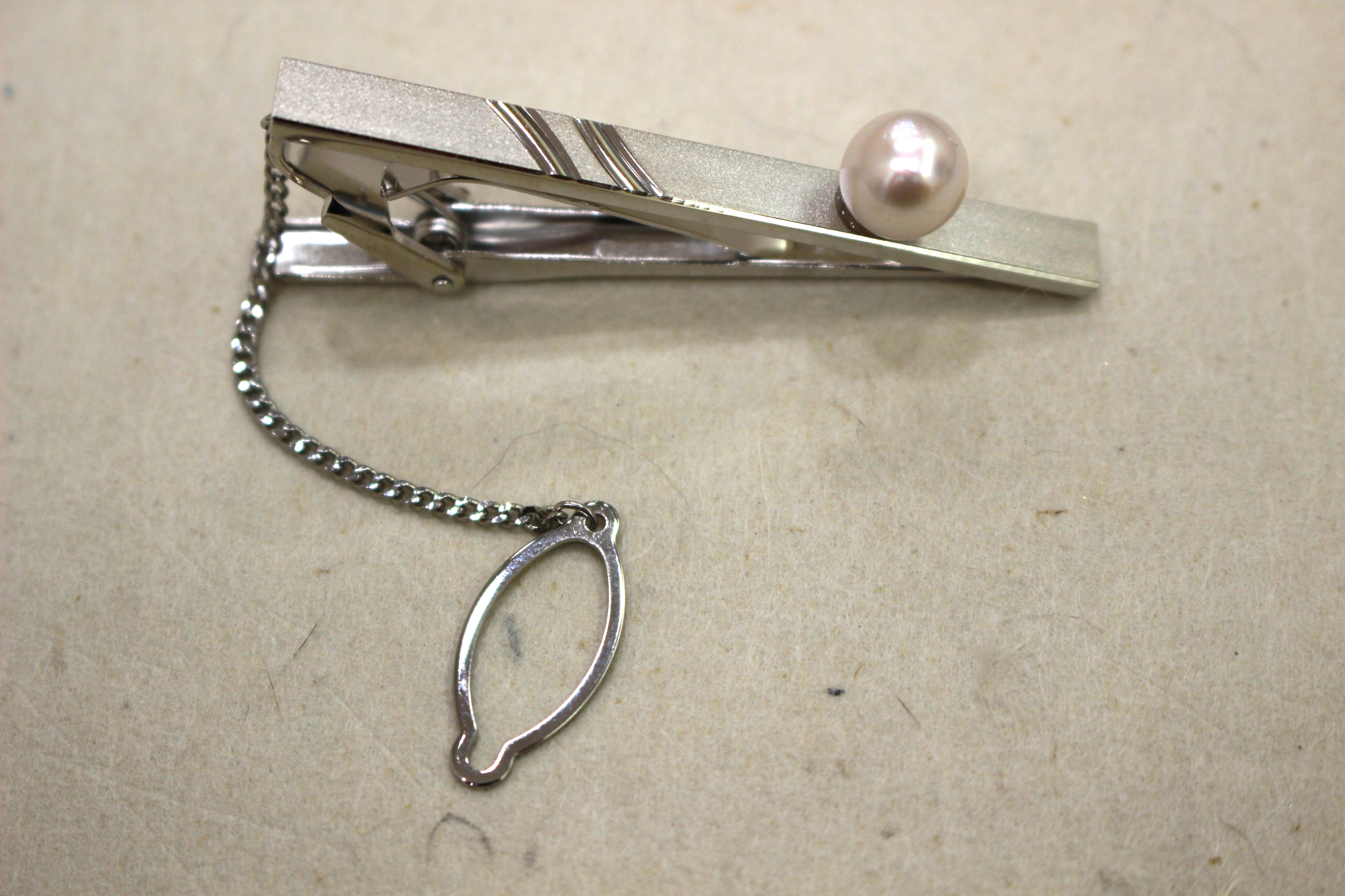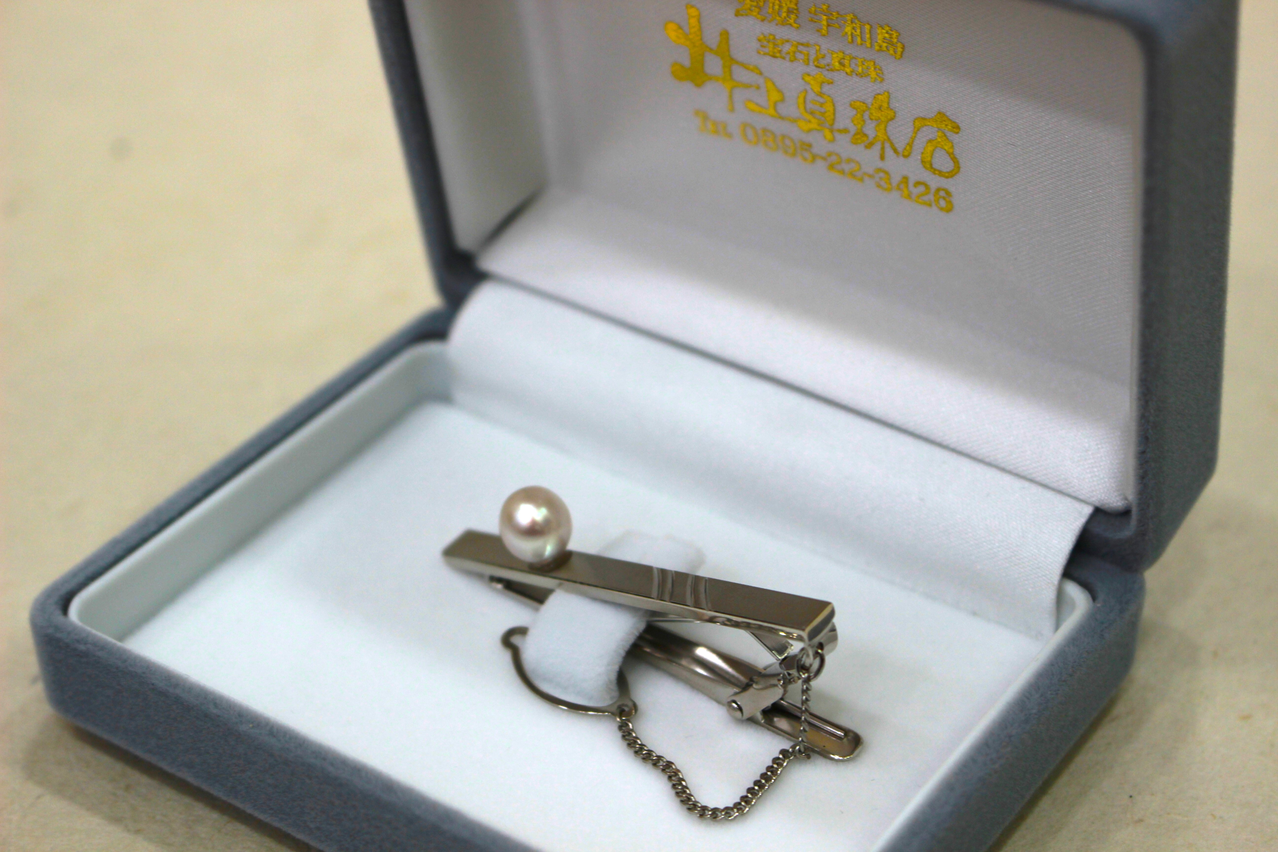 ツヤ消し加工で品が良くシンプルなデザインのアコヤ真珠ネクタイピン。