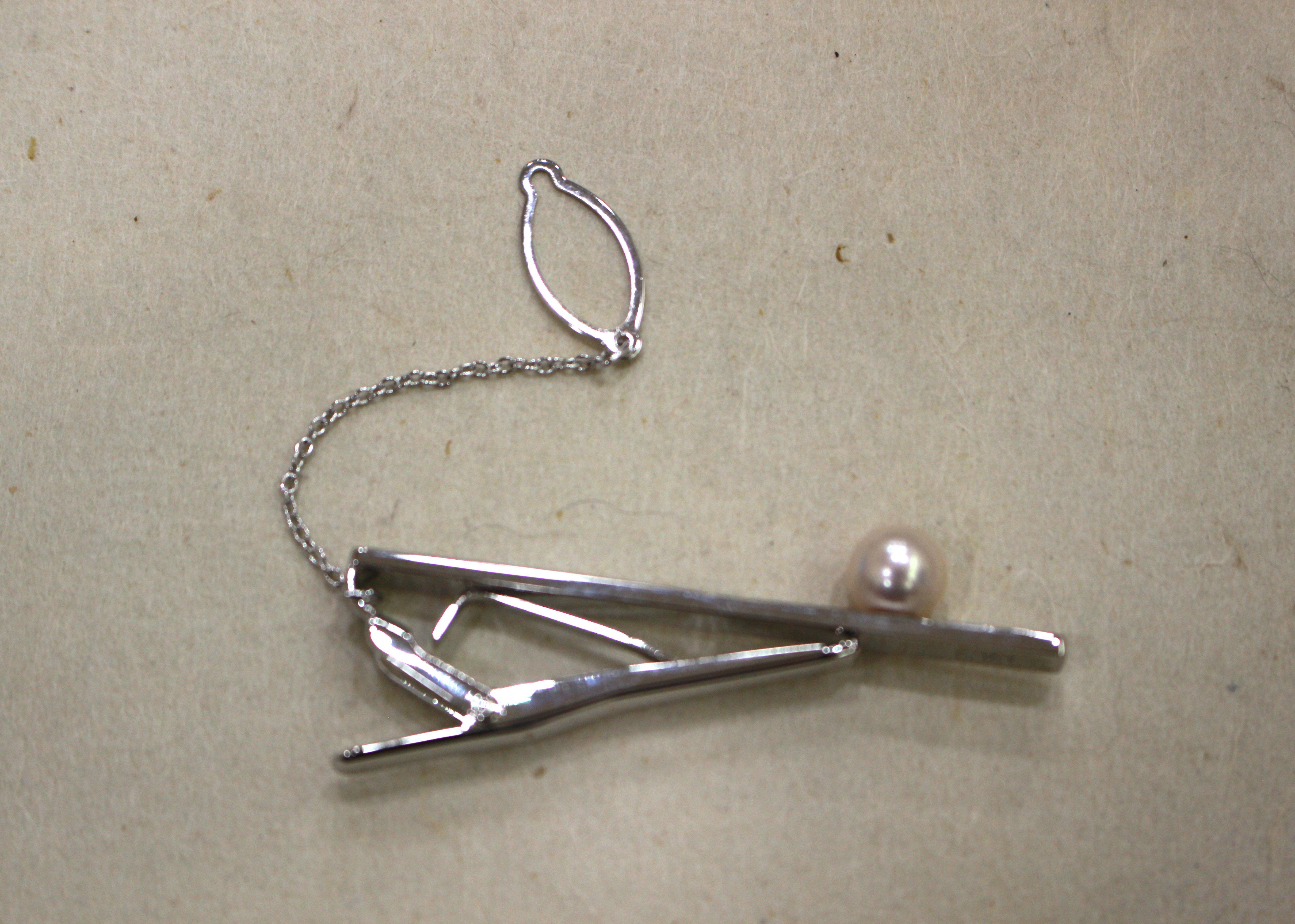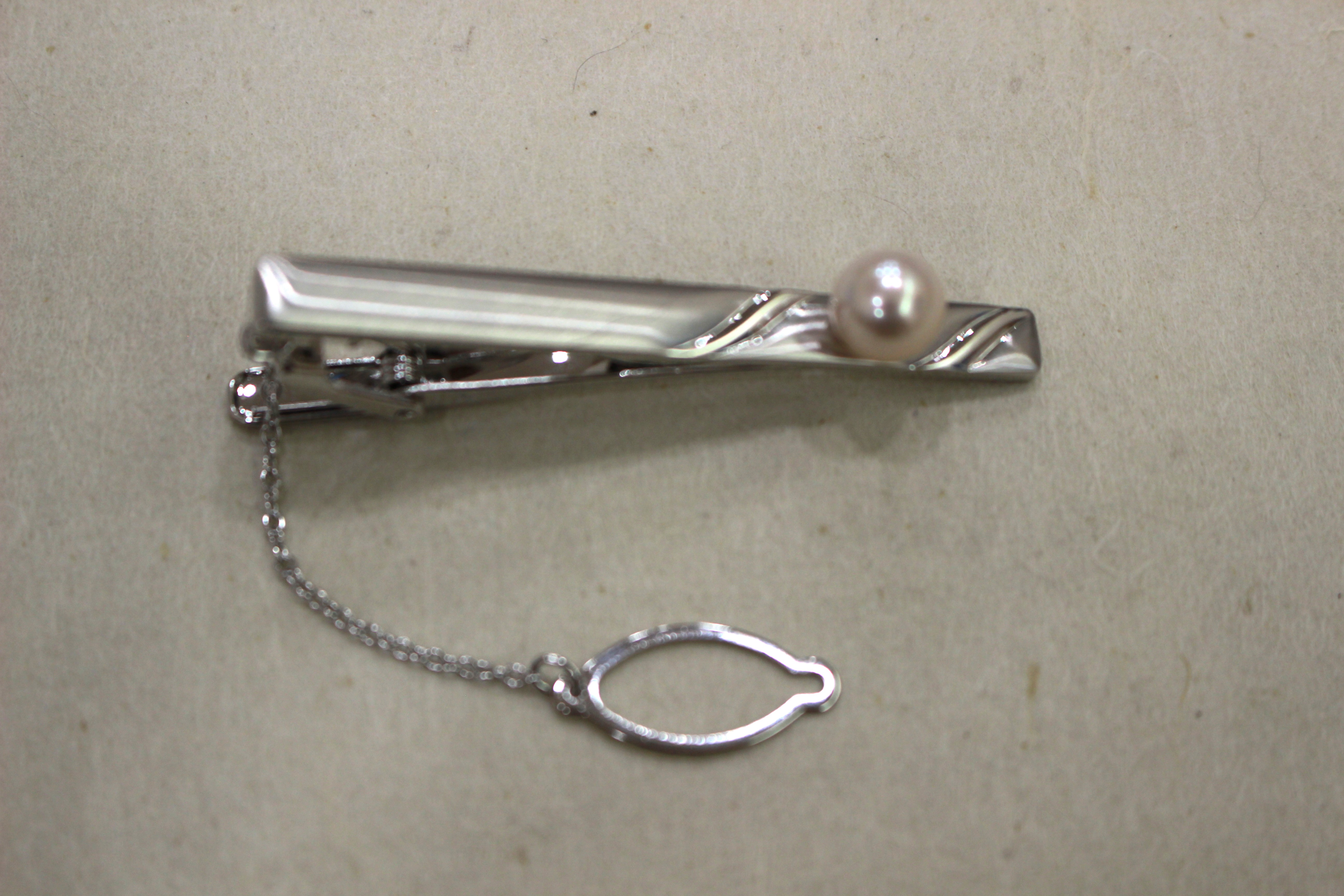 シンプルで上品なデザインのアコヤ真珠ネクタイピン。